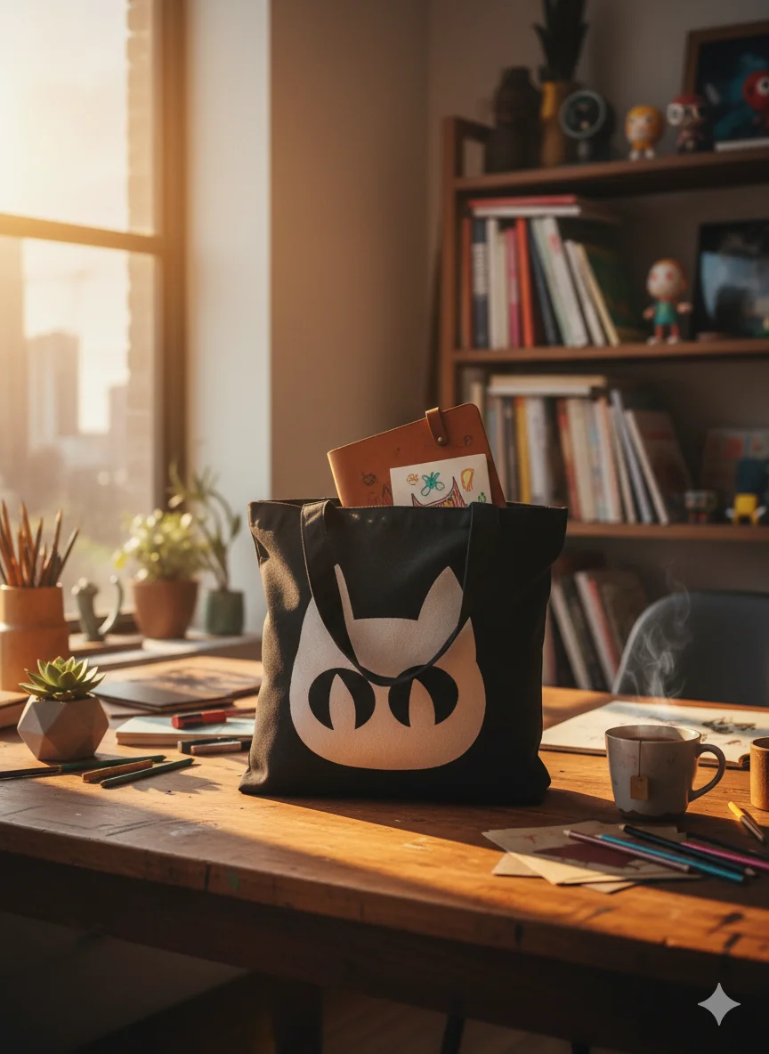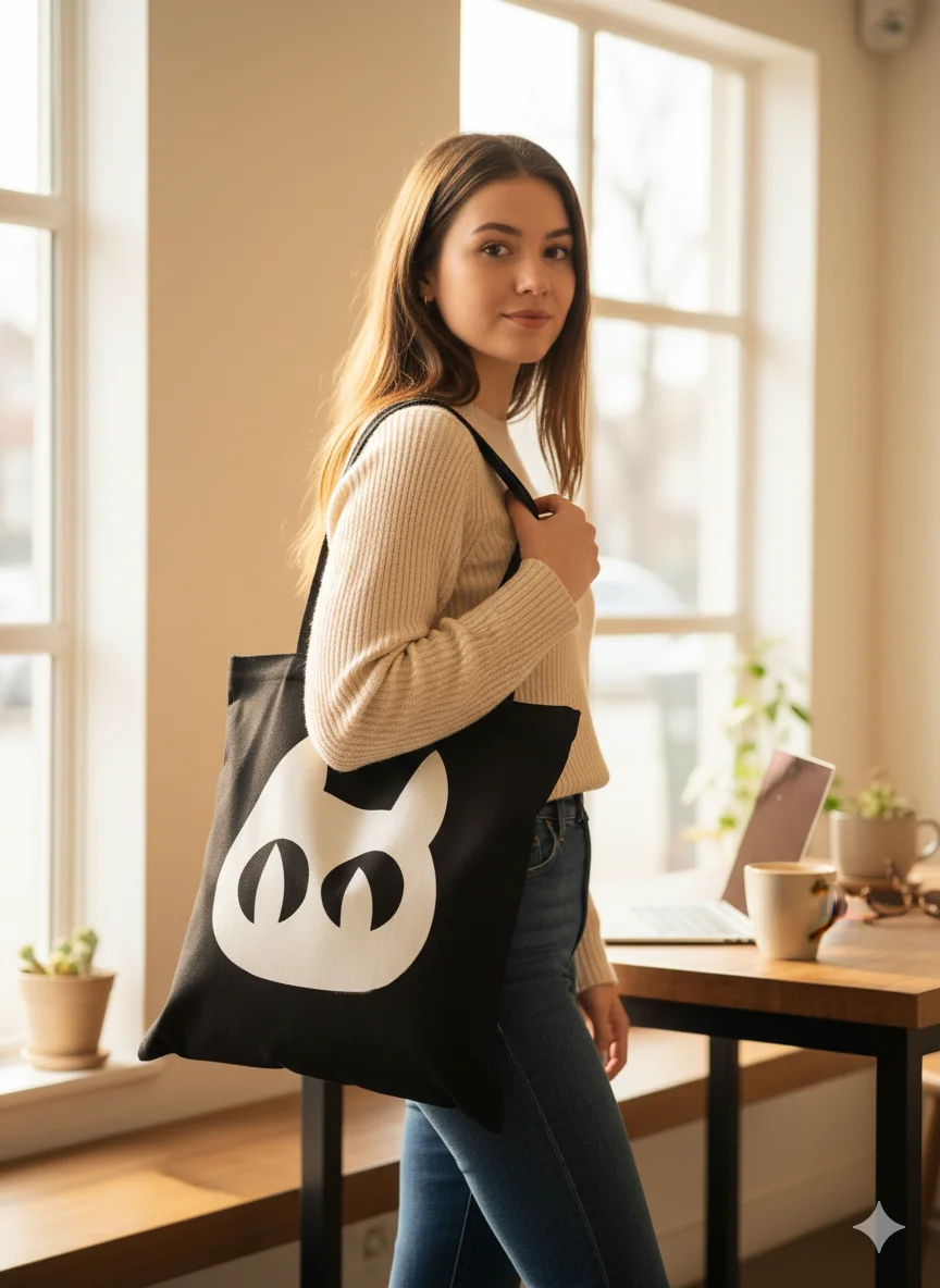 Divertido bolso de tela, con asas y cremallera, lleva todo lo que necesitas con estilo.